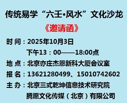 传统易学“六壬·风水”文化沙龙《邀请函》